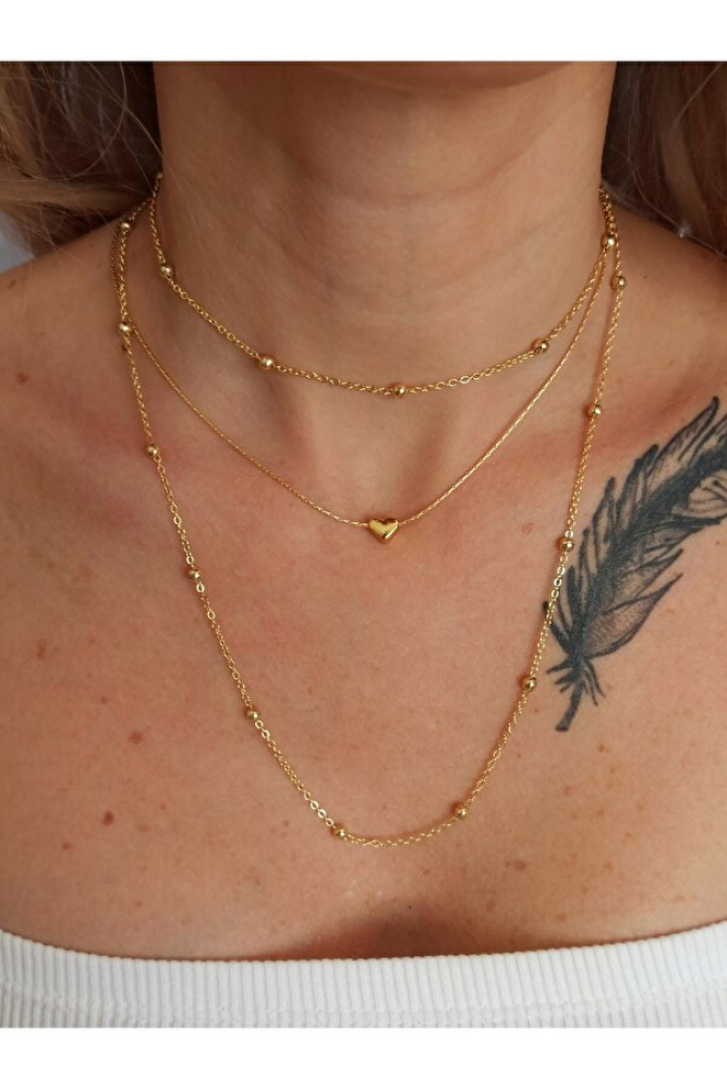 • تصميم سلسلة قلوب بثلاثة أدوار متداخلة يضفي عمقاً وأناقة على مظهرك