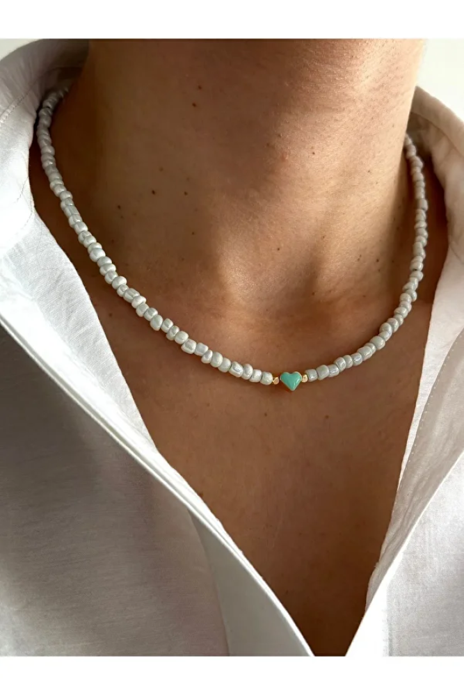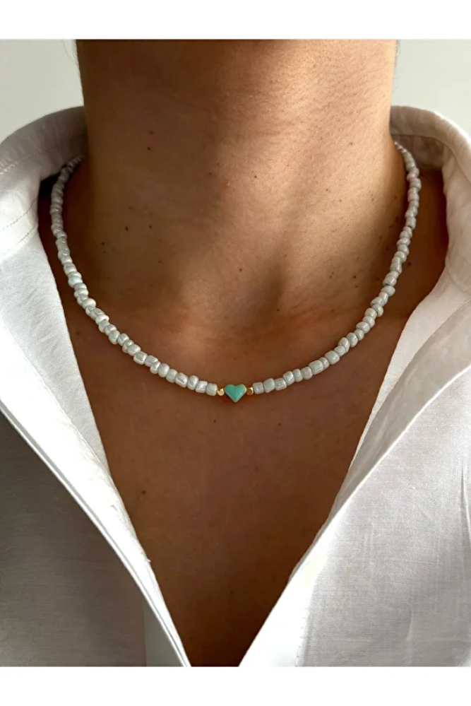 عقد خرز ابيض بقلب أنيق وبسيط يضيف لمسة رومانسية ناعمة إلى إطلالتك، مناسب لجميع المناسبات ويكمل إطلالة عصرية وجذابة بسهولة من Stylna.