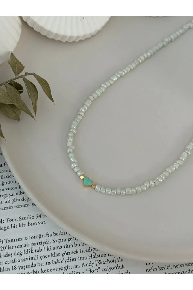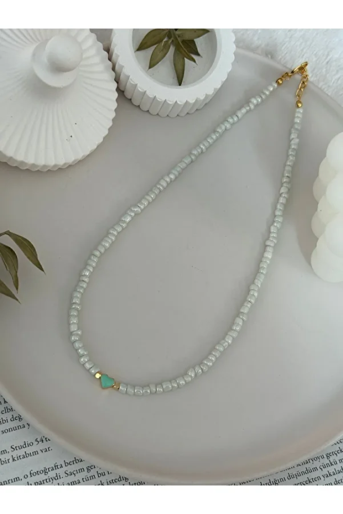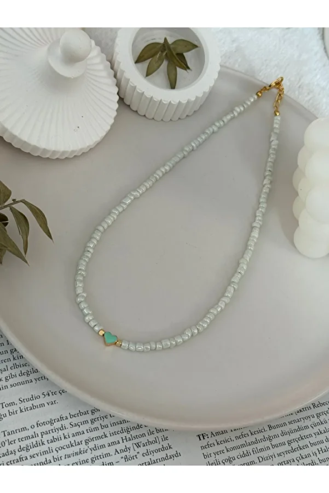 - اسم المنتج: عقد خرز أبيض بقلب