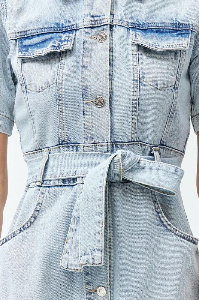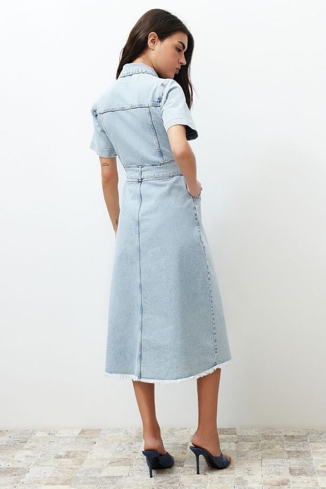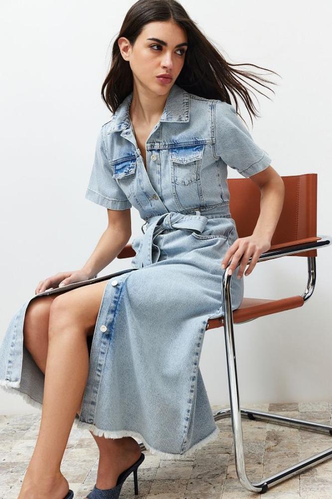 - خامة الجينز المتينة تضمن استدامة عالية مع المحافظة على شكل الفستان