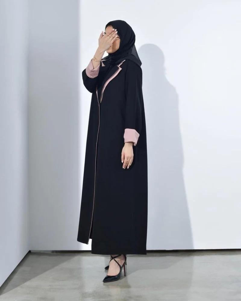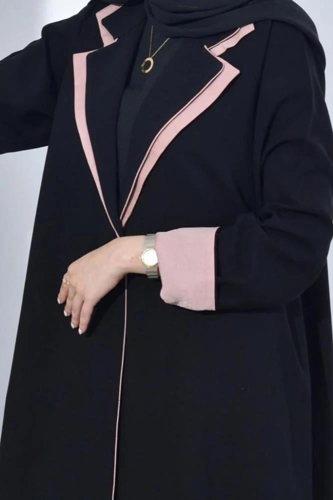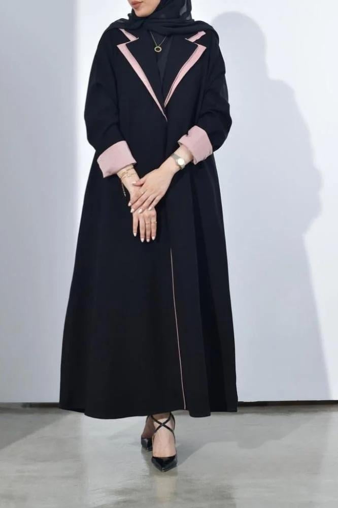 - بياقة طبقتين تضفي لمسة عصرية فريدة على العباية.